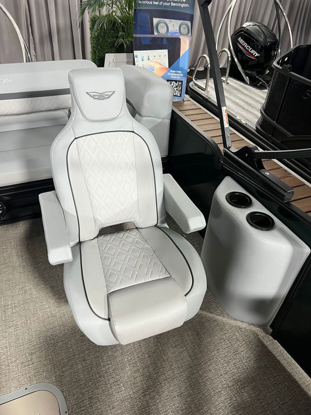 Features Mercury SmartCraft gauges for advanced engine data and a wireless phone charger at the helm. Additional conveniences like fender hangers and thoughtful storage solutions make this boat as practical as it is powerful.