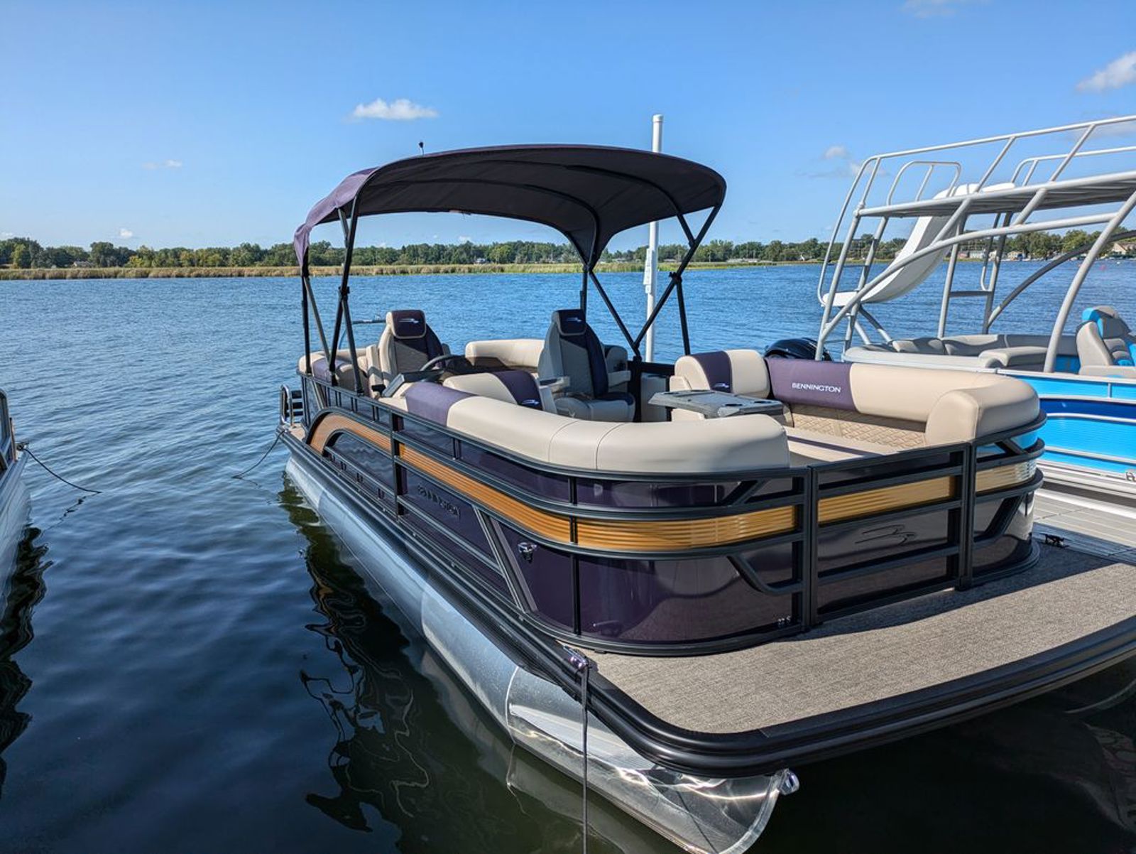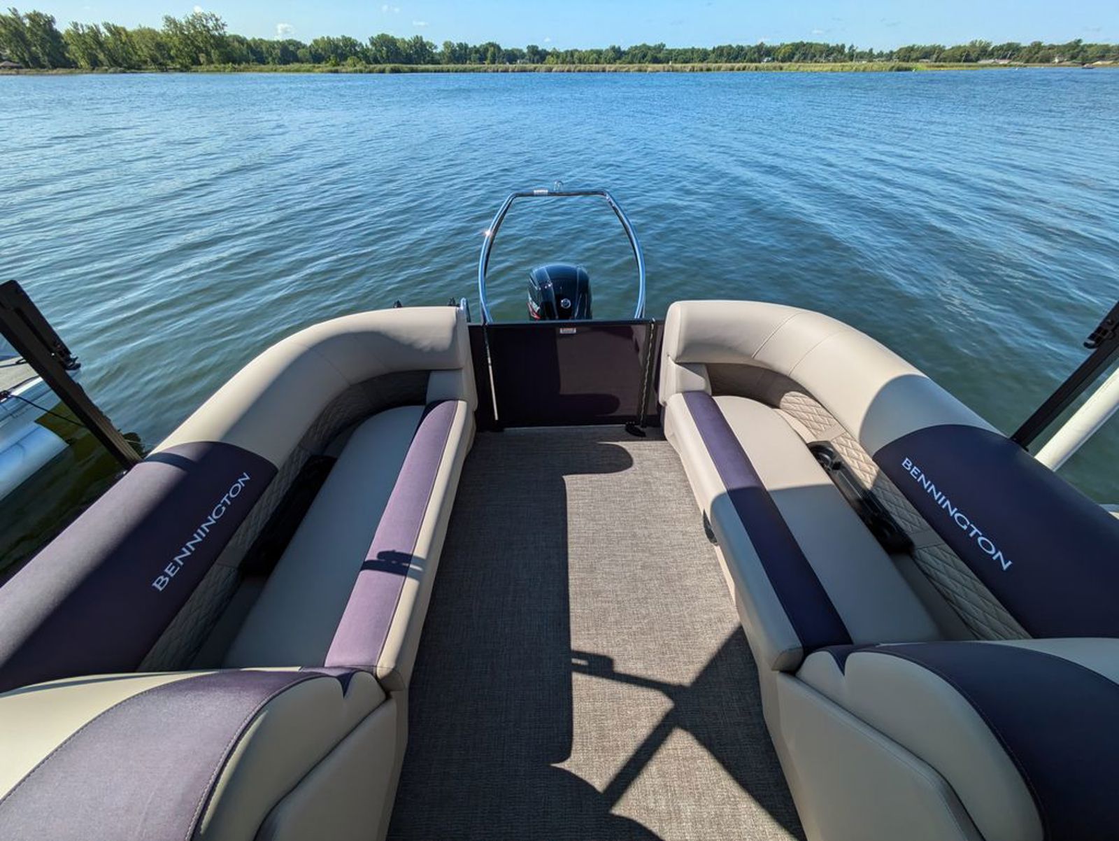 Built for both fun and functionality, this Bennington includes bow and aft pop-up cleats, a ski tow bar for watersports, and the proven SPS Performance Package with a 33-gallon transom direct fill, delivering a smooth, stable ride with impressive acceleration. Finished with a Yamaha mechanical pre-rig and a single battery switch, this boat is ready for the water.