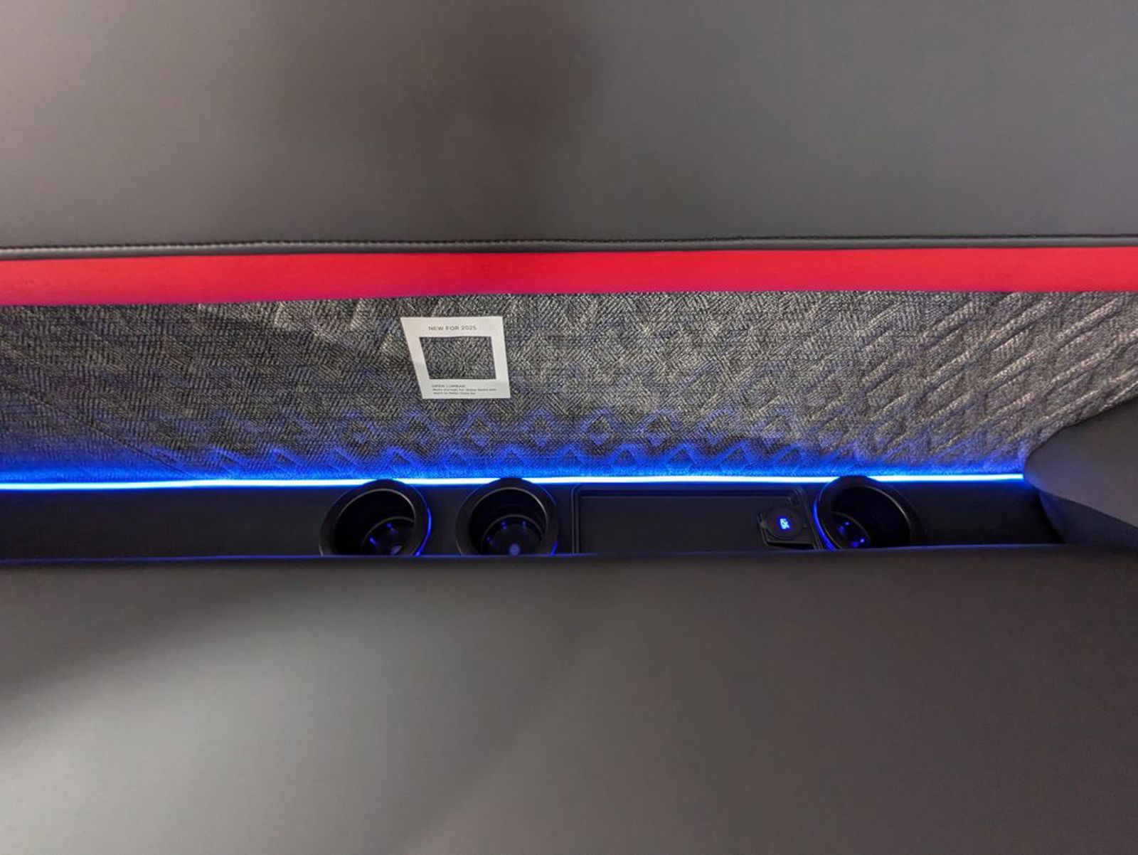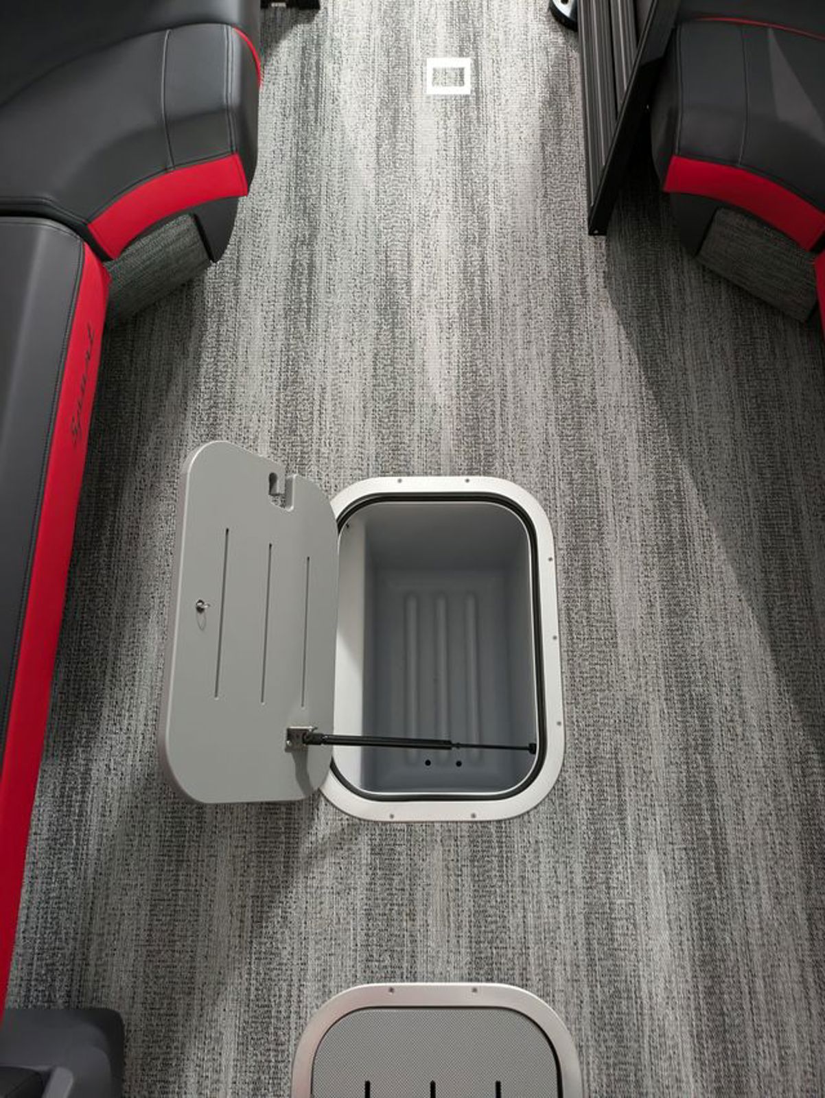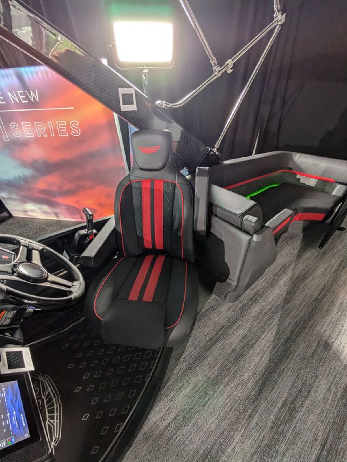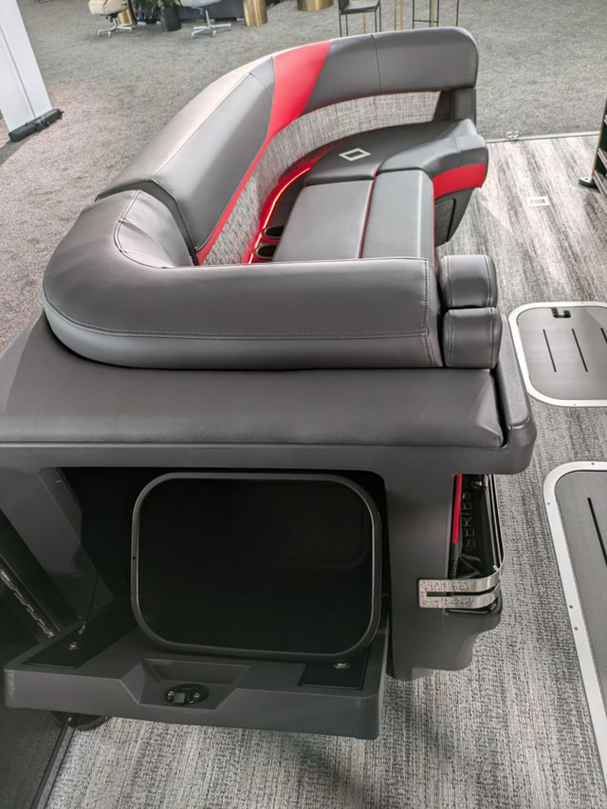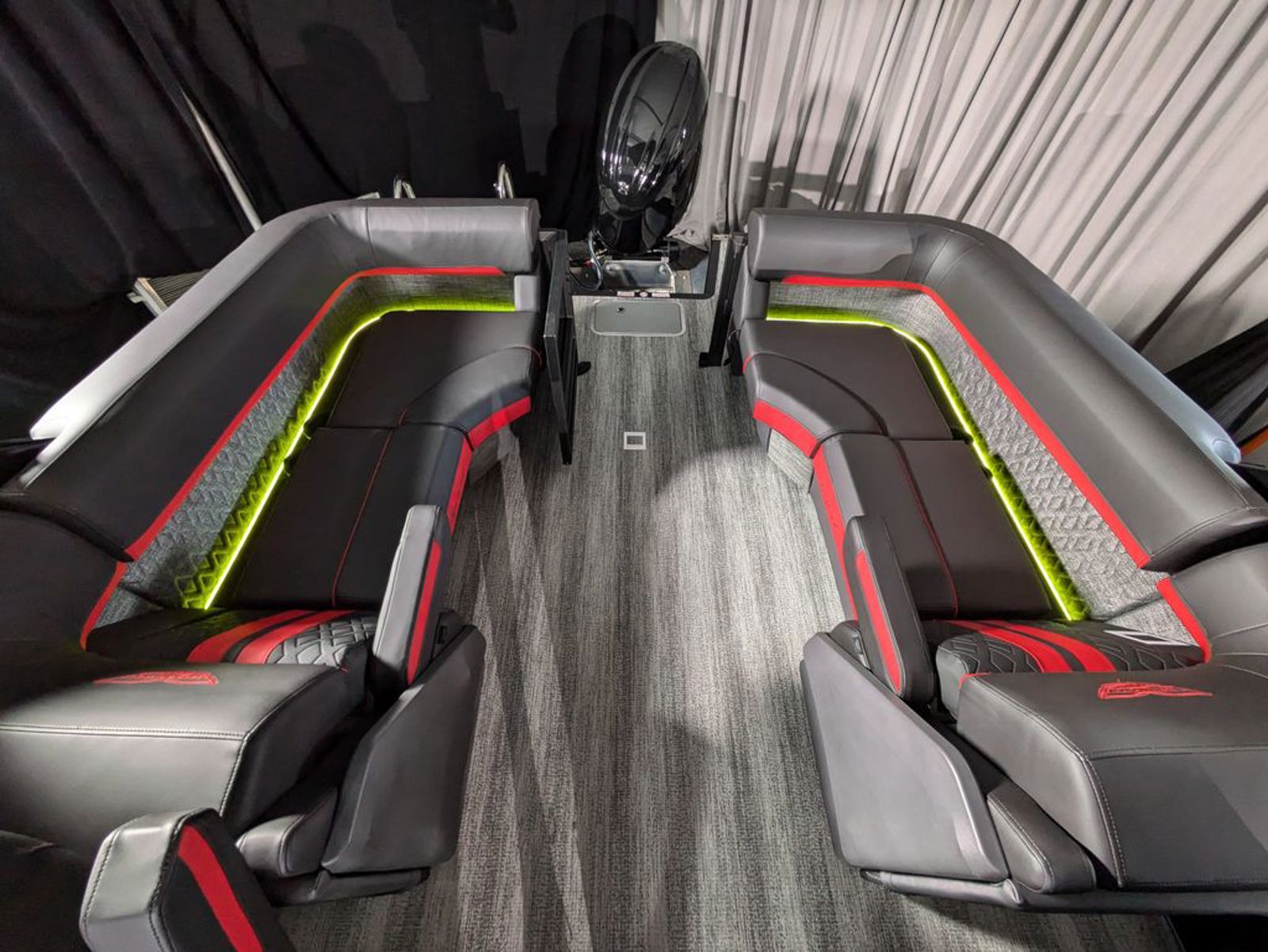 Entertainment and ambiance are unmatched with a full Rockford Fosgate M1 lighted speaker system, rail integrated headlights, and underwater lighting, creating the perfect environment day or night. The master power panel with horn, USB ports, and wireless charging dock ensures convenience and connectivity for everyone on board.