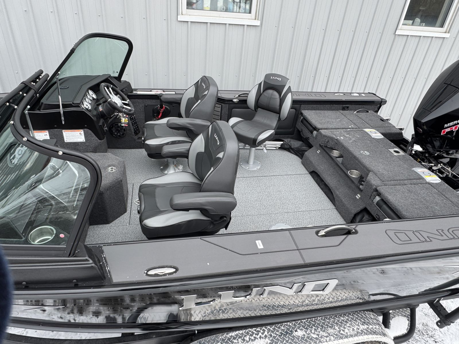 At the helm, you’ll find cutting-edge technology including a 12” Vivid UX touchscreen display paired with a 7” Garmin multifunction display, giving you full control and clear navigation at your fingertips. The elevated console with pocket Mythos design enhances visibility and ergonomics, while power hydraulic assist steering and a Lacolla black steering wheel provide effortless control and a premium feel.