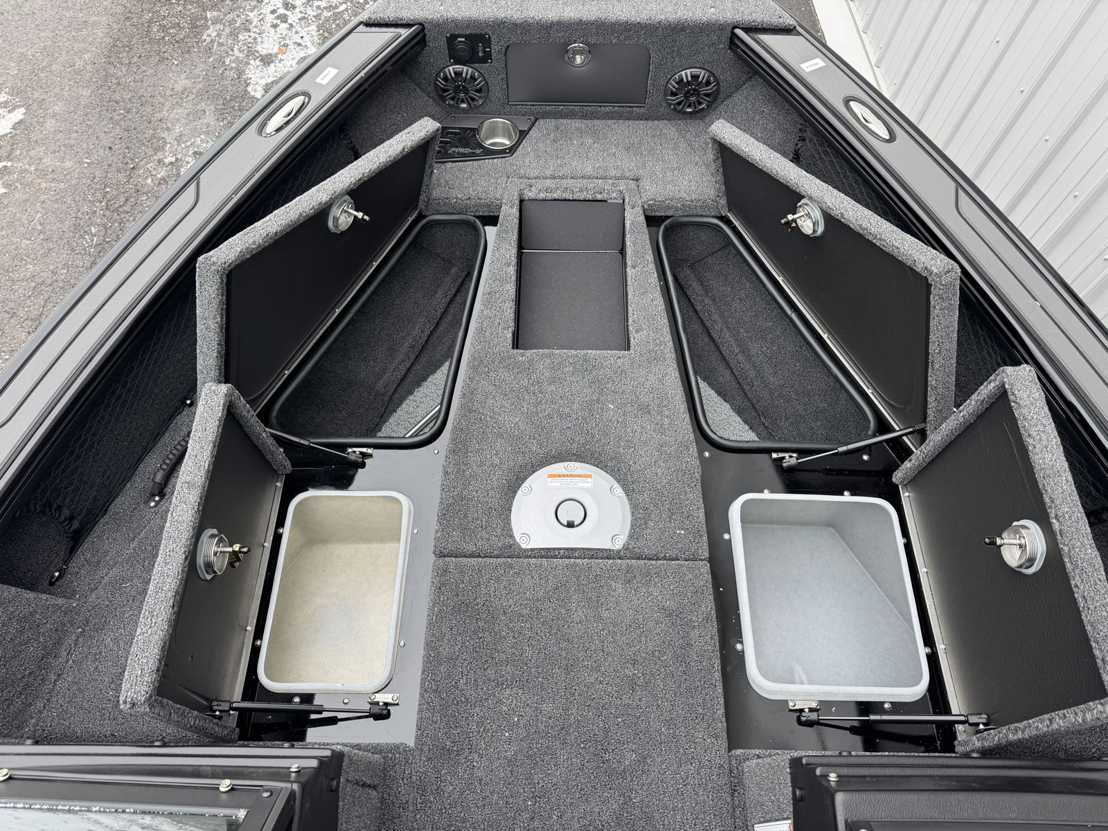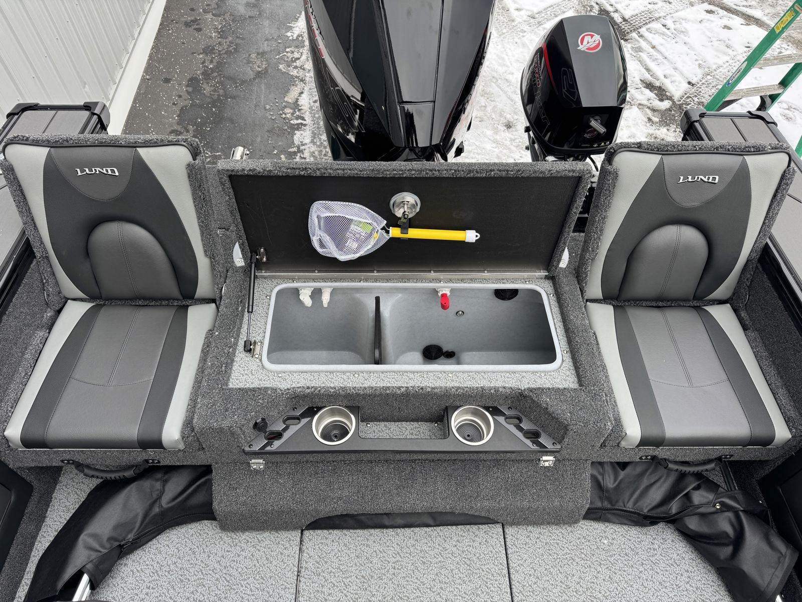 Fully rigged for serious anglers with a rod holder setup with extensions, washdown system, and a 5-bank Minn Kota onboard charger to keep your batteries ready for long days on the water.