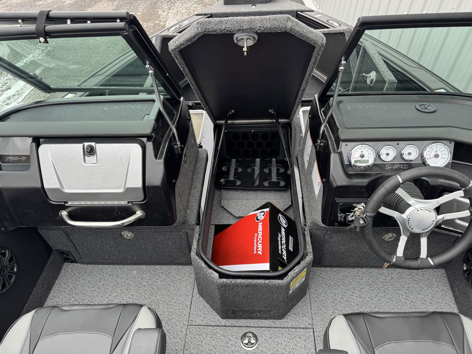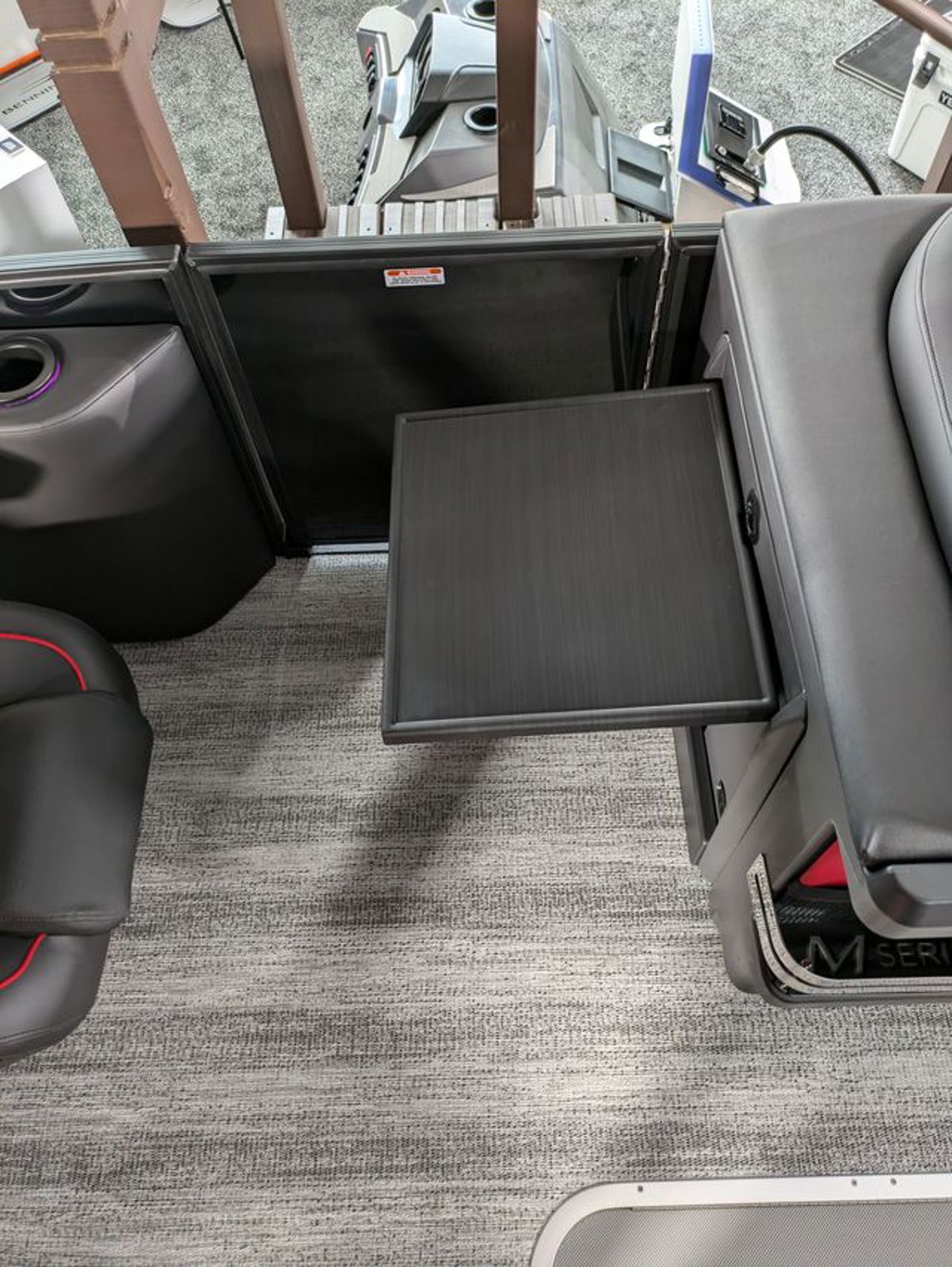 Features Mercury SmartCraft gauges for advanced engine data and a wireless phone charger at the helm. Additional conveniences like fender hangers and thoughtful storage solutions make this boat as practical as it is powerful.