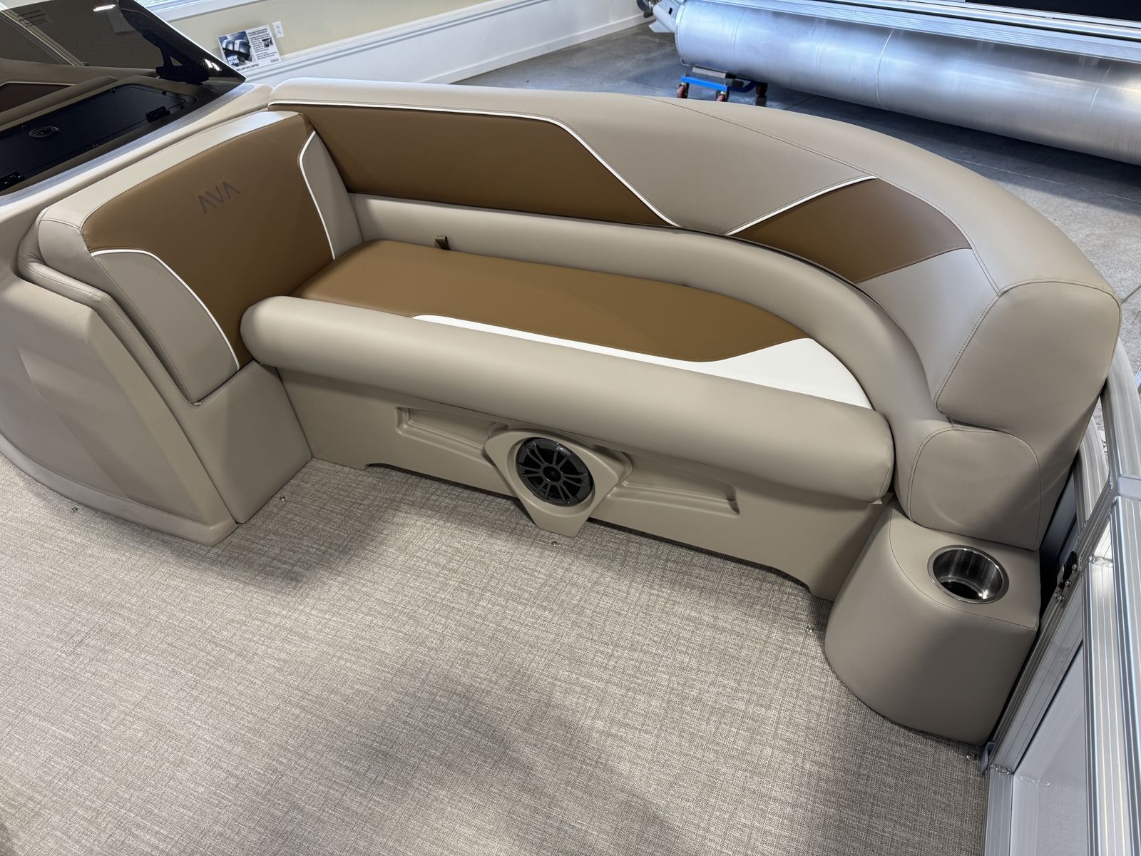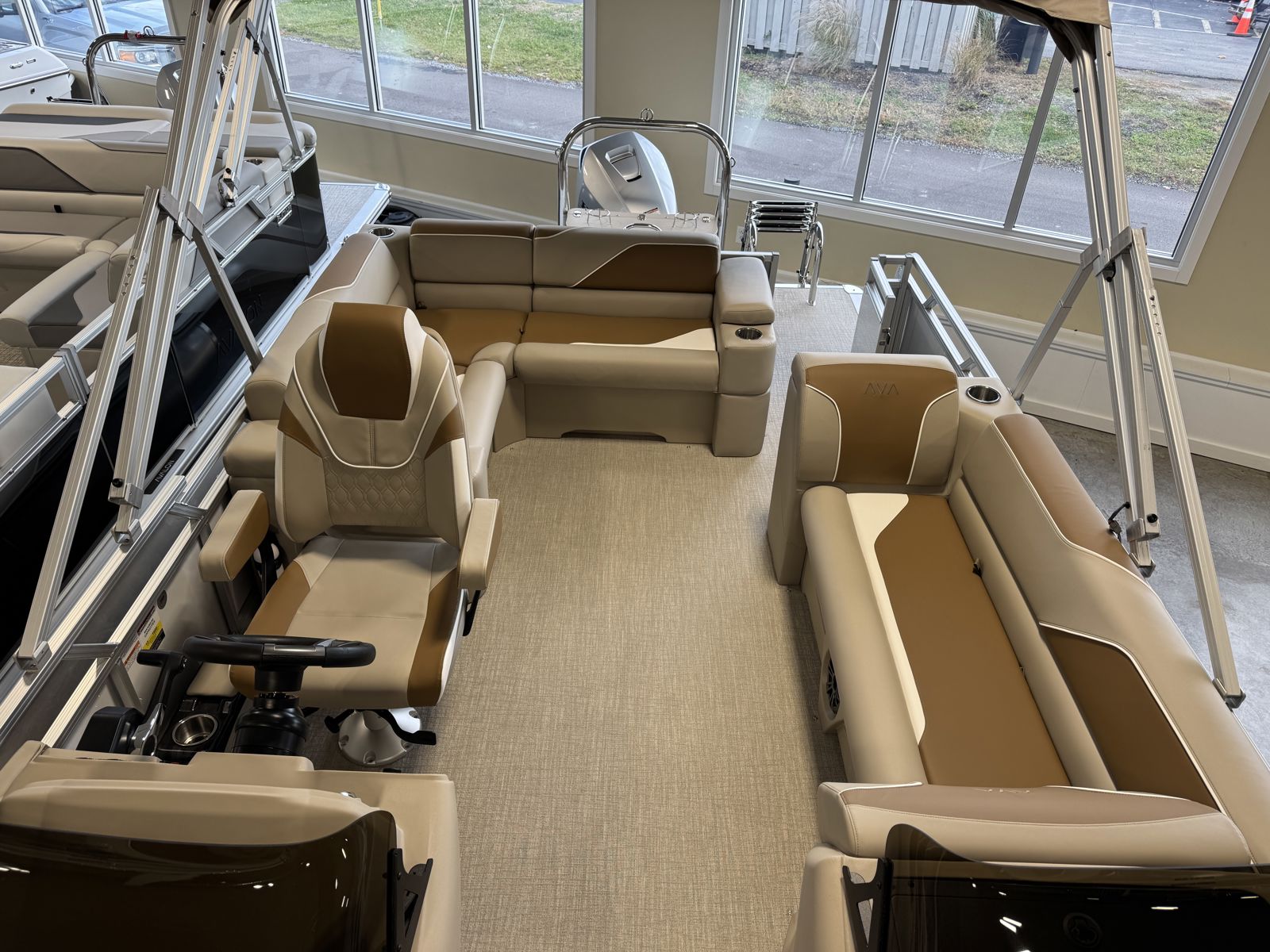 Finished in White Flake Metallic, this Avalon presents a clean, upscale appearance. The Taupe canvas complements the design, while the ELW (Elite Windshield) layout adds a sporty, automotive-inspired touch to the overall look and feel.