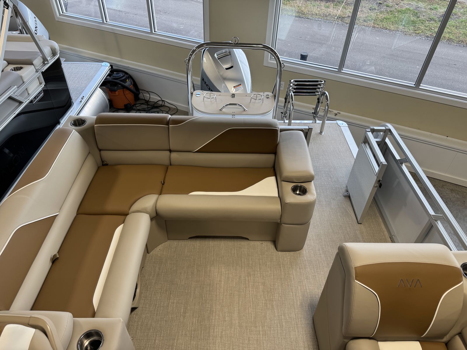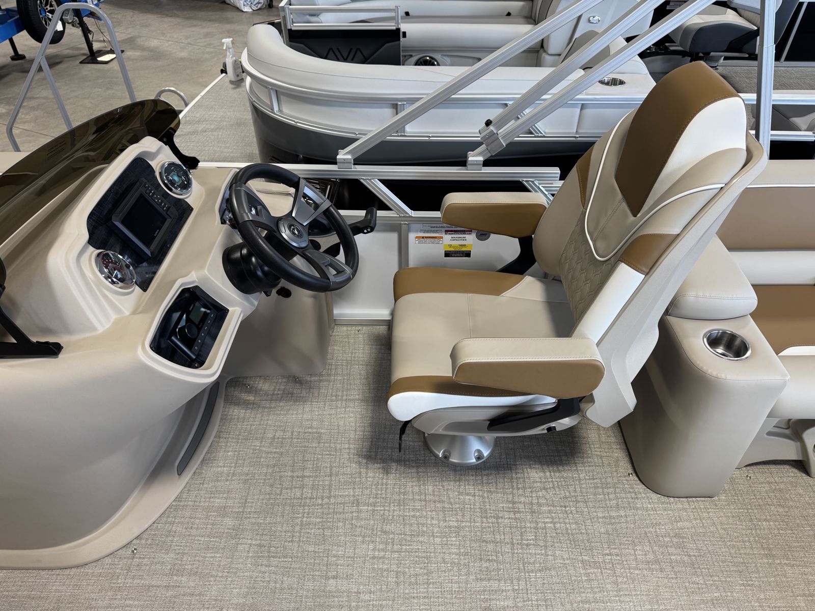 Equipped with Riptide Dune flooring for durability and easy maintenance, along with seat covers to protect your investment. Thoughtful additions like multiple table configurations and premium seating make this boat ideal for hosting family and friends.
