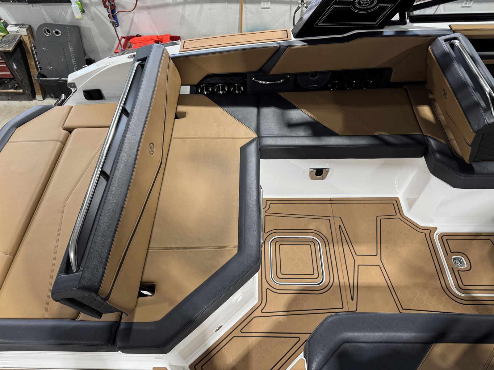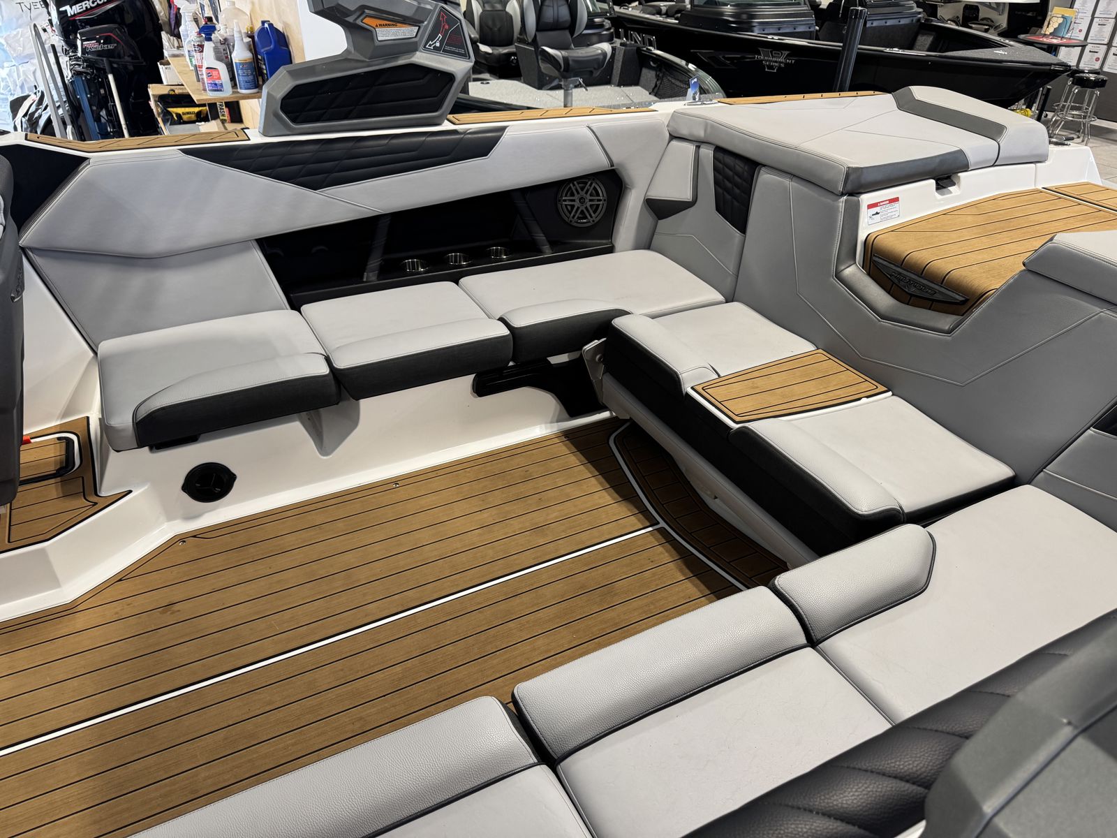 Enjoy premium sound with a Fusion stereo system, paired with a dash-mounted Garmin for navigation and convenience. The LZS digital dash provides a modern helm interface with easy access to key information and controls.