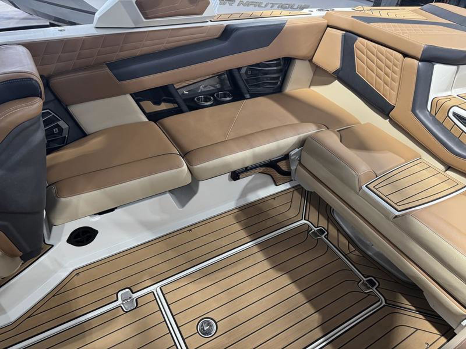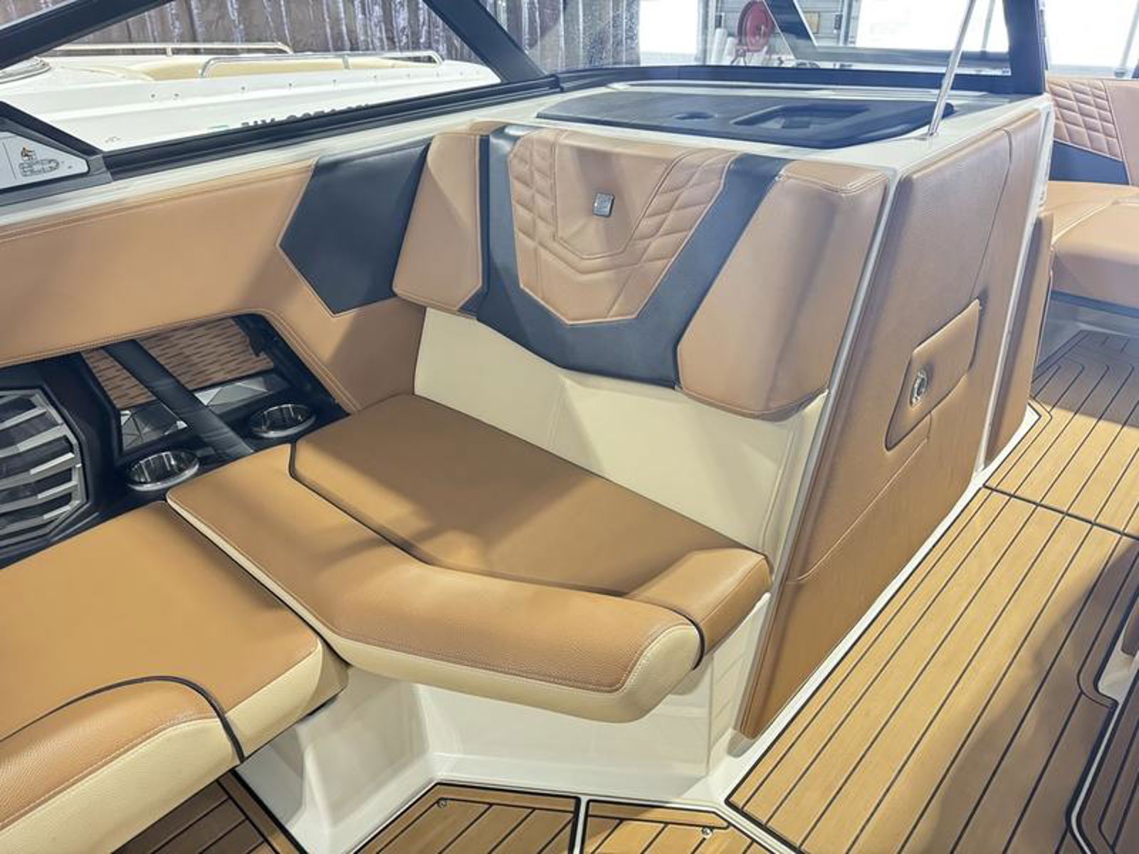 The all-new G23 takes on the asymmetrical design that Nautique has been on the forefront of and taken it one step further. Clear visibility of the water and the LINC Panoray touchscreen are evident, while keeping everything the driver needs within reach. A phone pocket doubles as a place to keep your drain plug when your boat is out of the water, and a large open dash area is the ideal place for hats and other accessories.