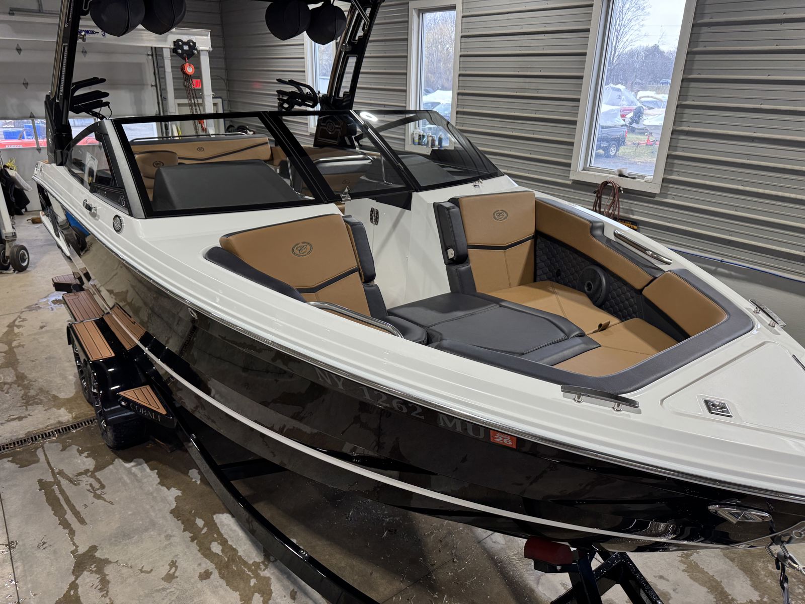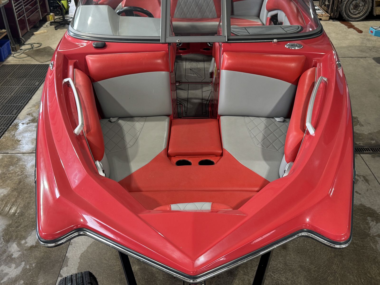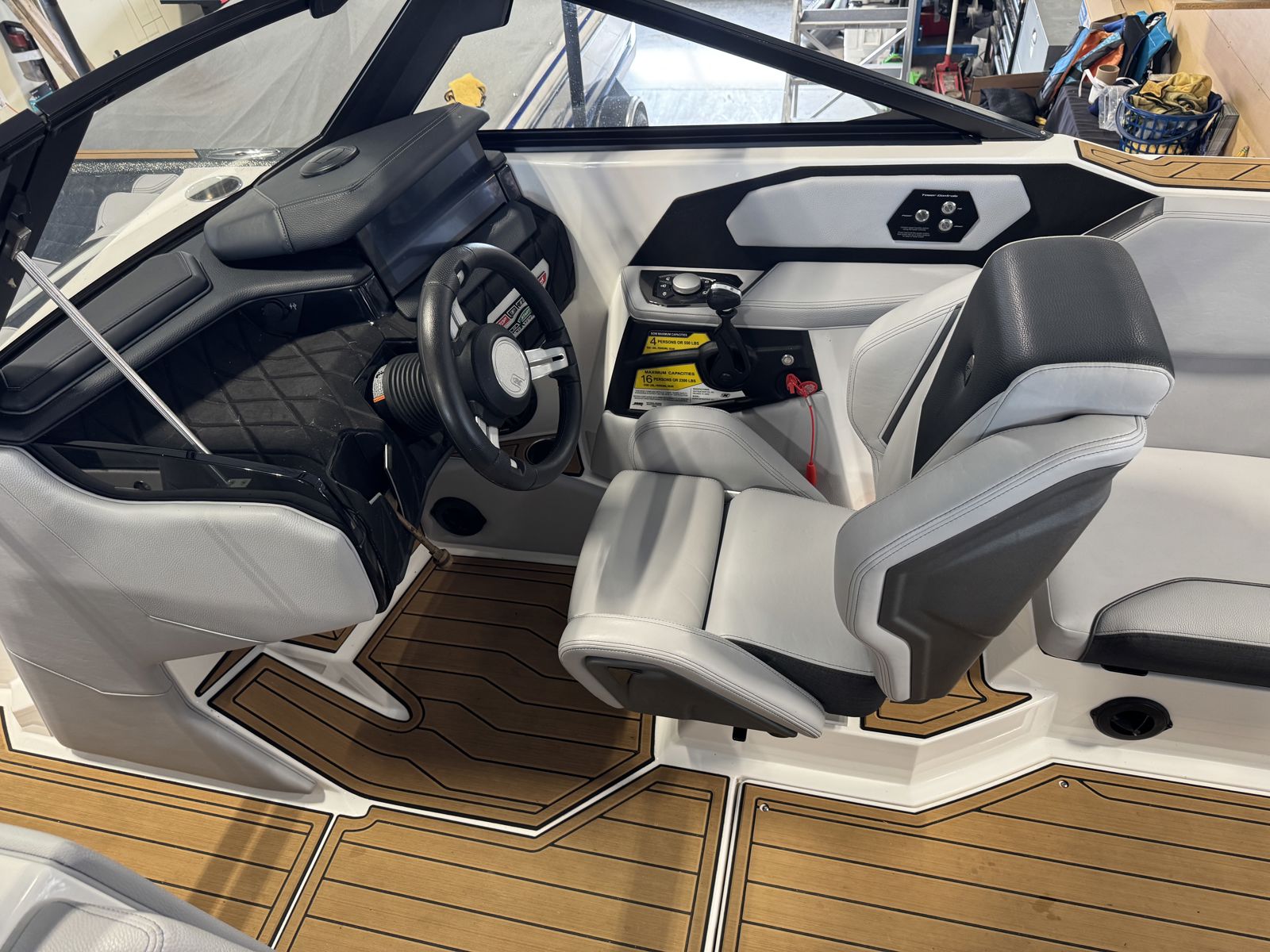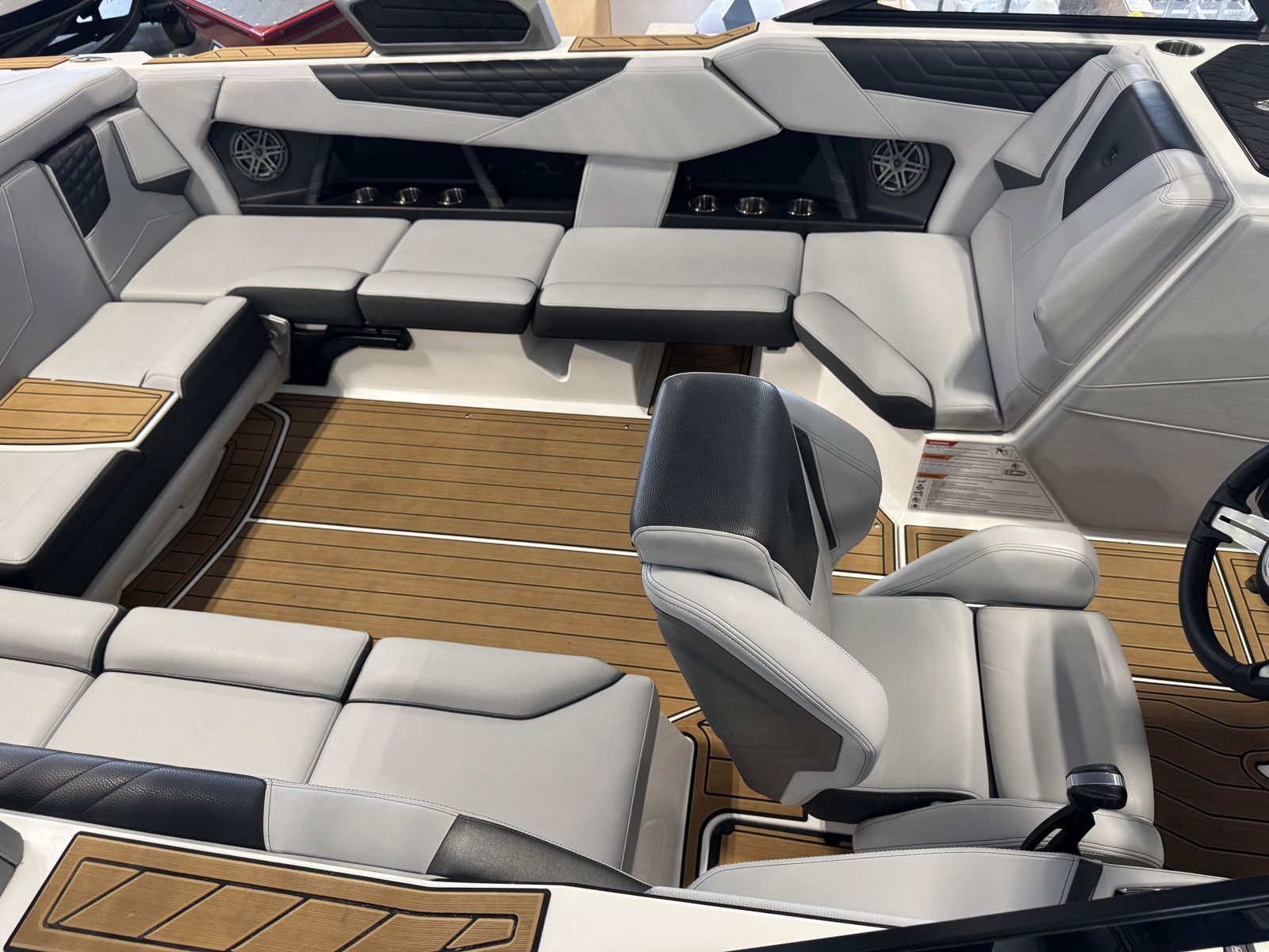 Features two captain’s chairs with flip-up bolsters for added comfort and visibility. The open bow seating and spacious cockpit layout provide plenty of room for passengers, while a ski locker keeps gear organized and out of the way.