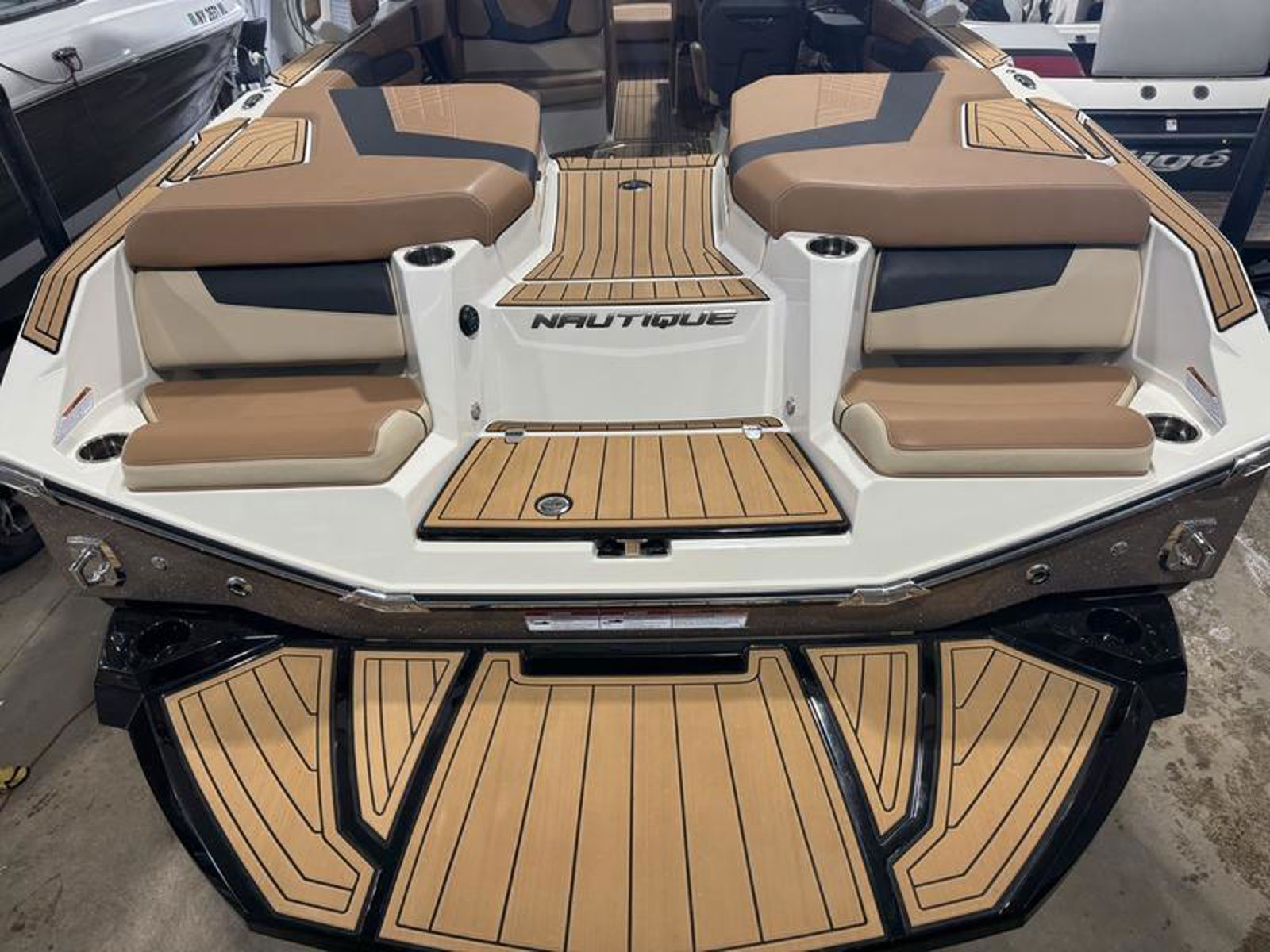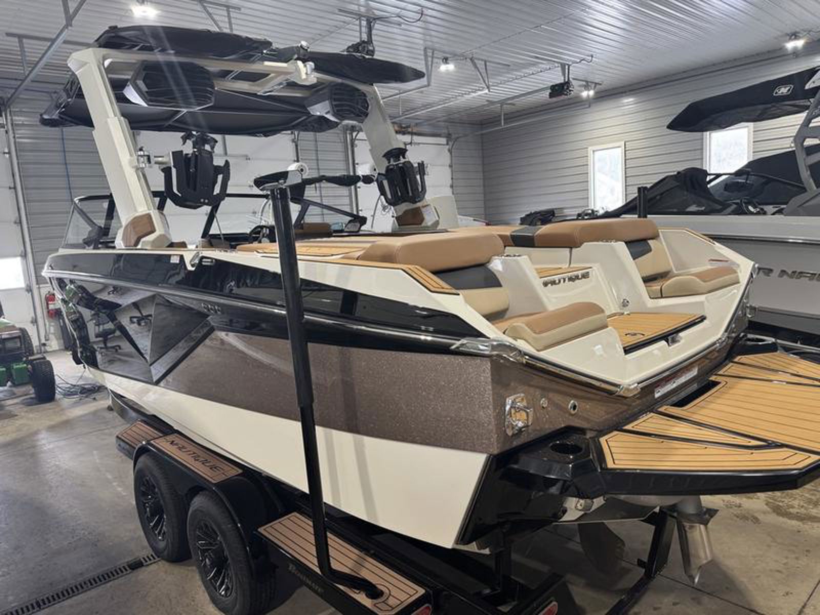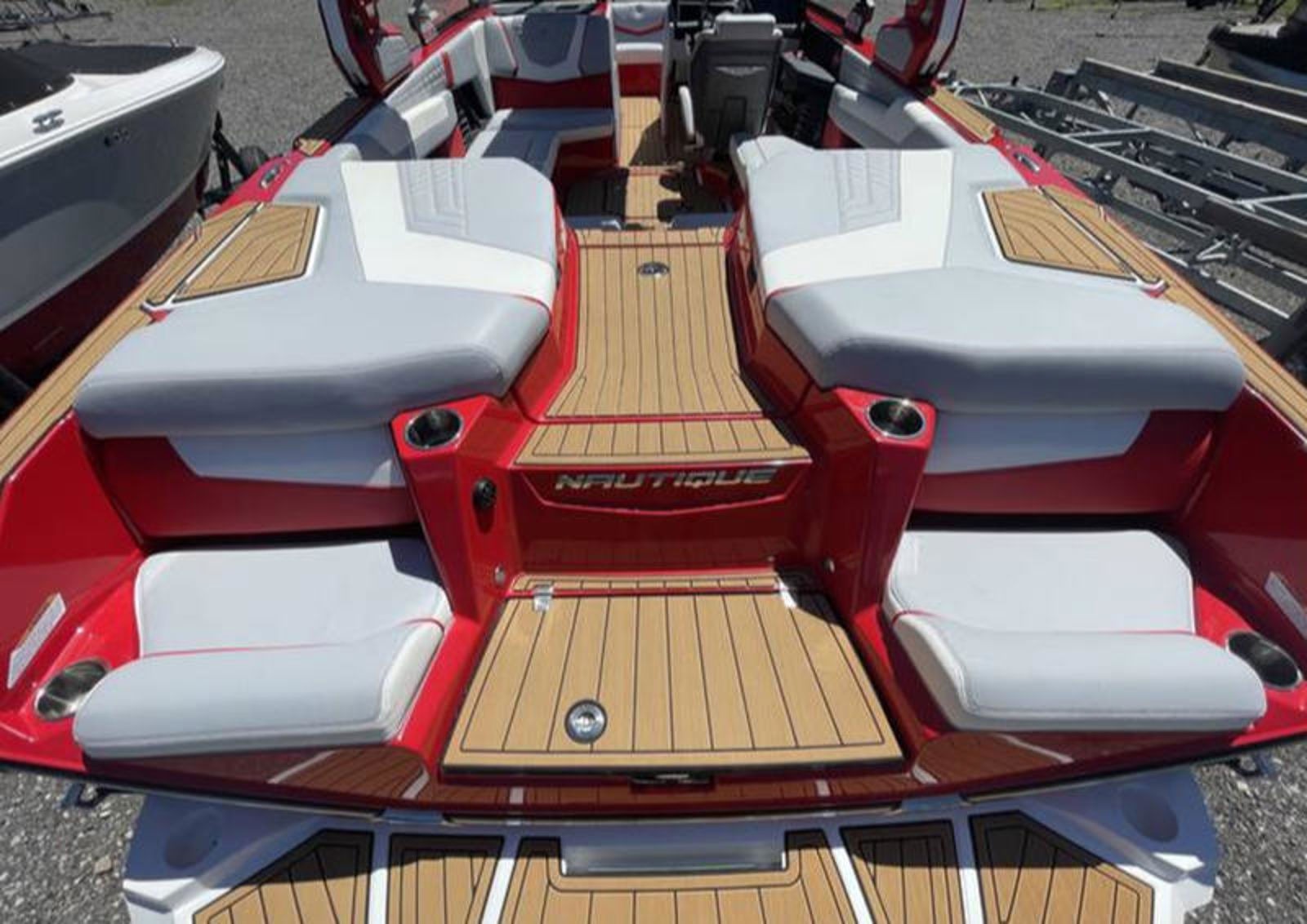 The G23 features bold, aggressive styling paired with Nautique’s Flight Control Tower®, available in multiple configurations for added functionality and ease of use. A Bimini with Surf Pockets and optional strapless board racks provide convenient gear storage, while the sleek windshield and refined exterior lines reflect Nautique’s premium design approach.