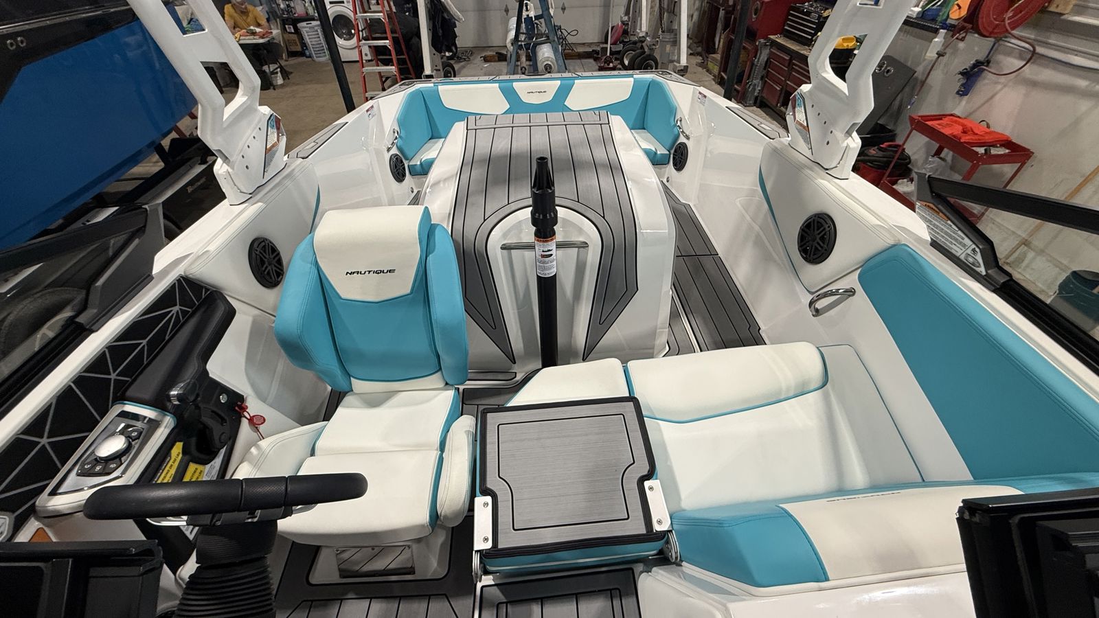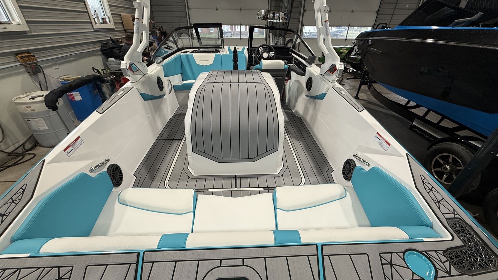 The G23 is equipped with Nautique’s advanced LINC Panoray® touchscreen helm, giving you full control over speed, ballast, and onboard systems. Premium JL Audio® sound systems with available tower speakers deliver high-quality audio throughout the boat.