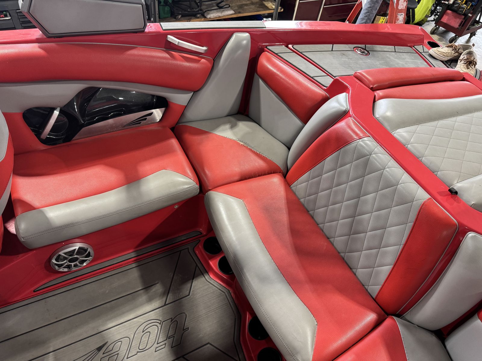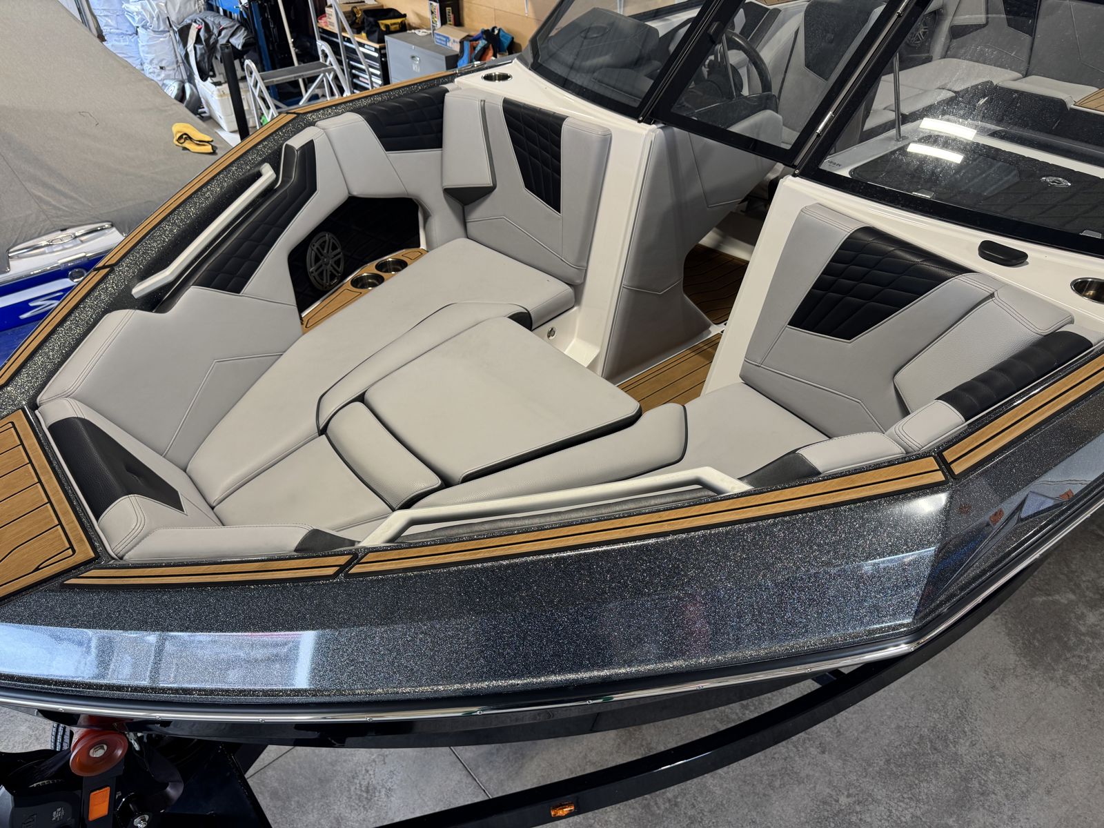 The bow of the Super Air Nautique GS22 has plenty of room to kick back and relax. This extra wide area has tons of space including under seat storage, cup holders and optional speakers to enjoy your own personal lounge.