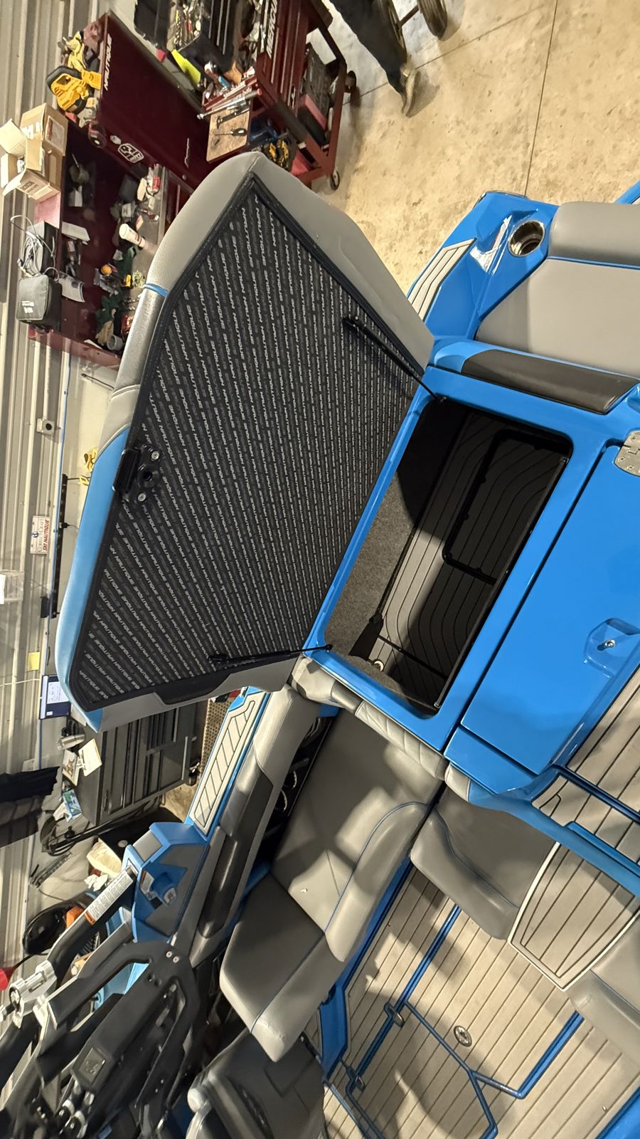 The wide coverage bimini is perfect for when your crew needs shade on those sunny days. Complimenting the look and feel of the GS22, use this bimini to keep your friends and family happy during sunny days on the water with added storage for two surfboards up top.