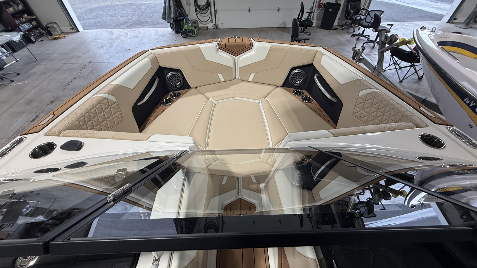 The Super Air Nautique S23 comes with a sleek windshield to complement its exterior aesthetic. Providing the driver with a clear view of the surroundings, this automotive-inspired windshield takes cues from the exterior and continues those lines giving the entire boat a well thought-out, integrated look.